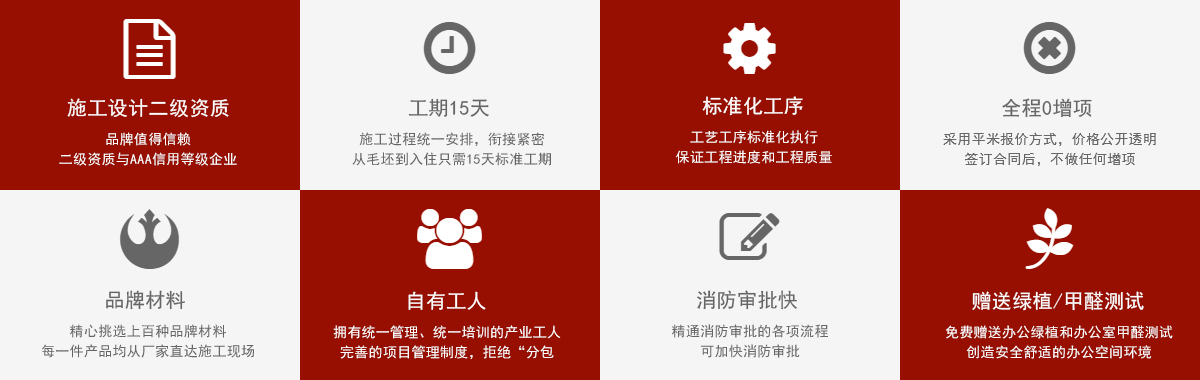 項目均實行直營,無外包風險,依托自有設(shè)計、施工、項目管控、售后服務(wù)體系,一站式裝修服務(wù)